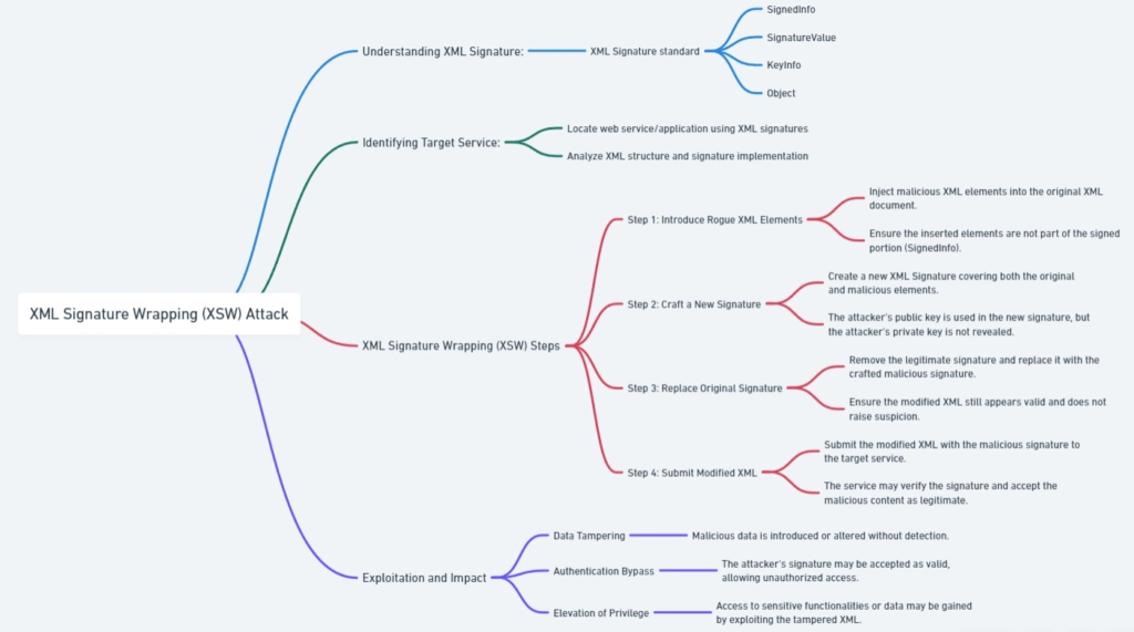 • XML Signature Wrapping (XSW) is a security vulnerability targeting XML signatures, which are like digital stamps ensuring data integrity.