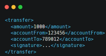 Consider a scenario where a financial application processes XML requests for fund transfers. The typical XML structure includes the transaction details and a digital signature: