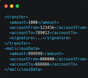 Impact: If the system doesn’t thoroughly validate the entire XML structure, it might process the unauthorized transfer specified in the malicious data, leading to financial losses.